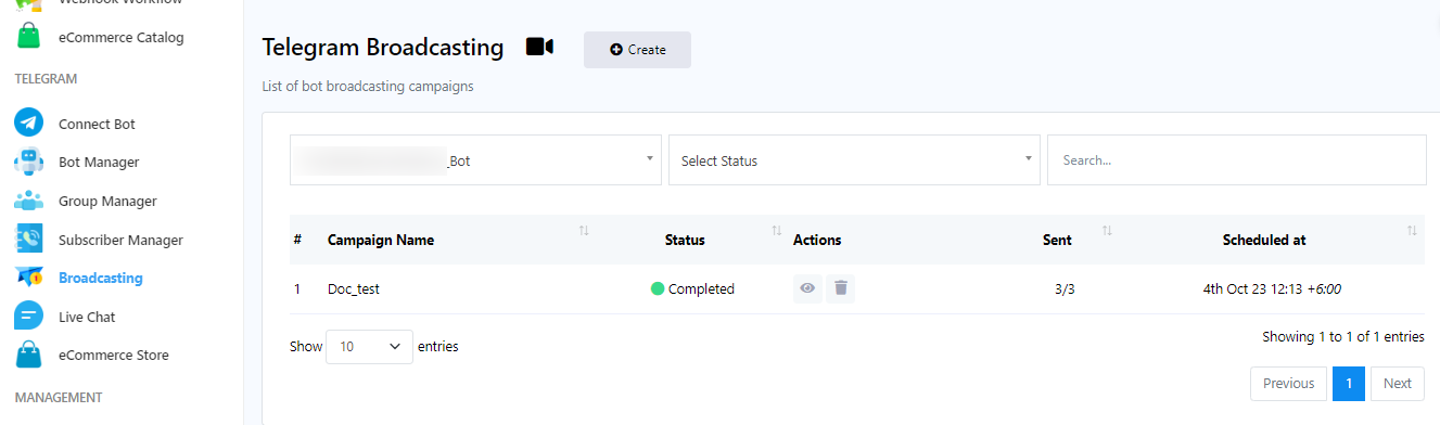 - Go back to `Telegram Broadcasting` page.